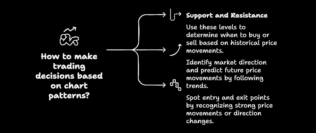Markets move in trends. Uptrends mean the price makes higher highs and higher lows, while downtrends mean lower highs and lower lows. Drawing trend lines helps track these movements and predict the next big move.